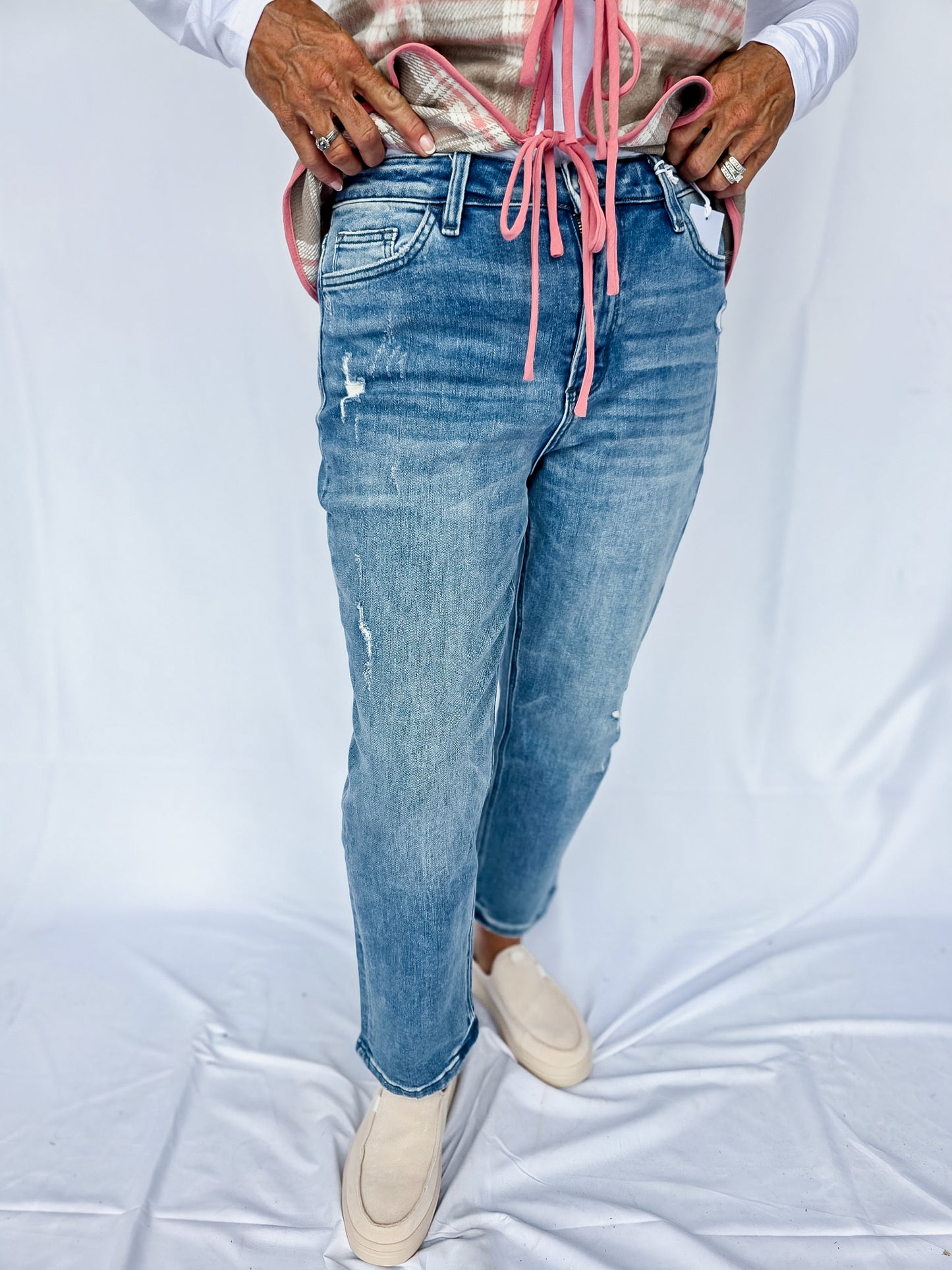 I am normally a 26/27 in jeans and grabbed the small! These are so stinkin' cute! They're comfortable and cute! Can't wait to wear these on repeat this fall!