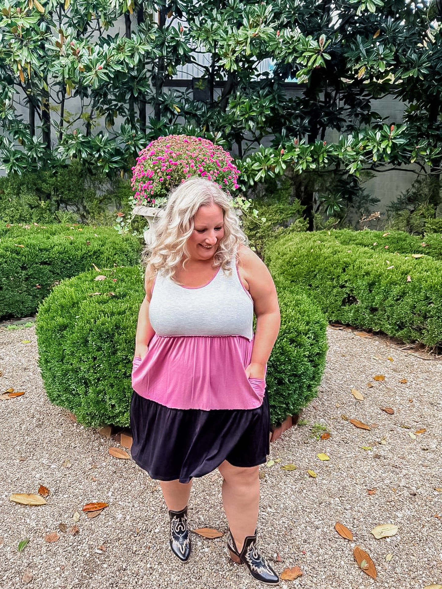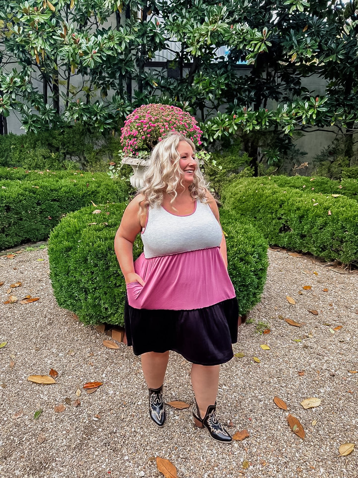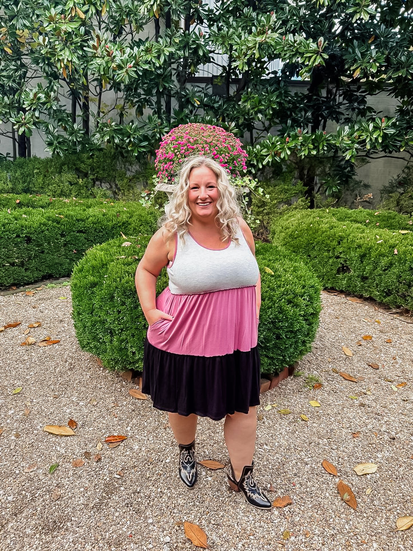 Soft, simple, and oh-so-flattering 💕 The Sweet Harmony Dress features a flowy tiered design with soft color blocking in grey, mauve, and black. Lightweight, breezy, and made with pockets — perfect for layering or wearing solo all season long!