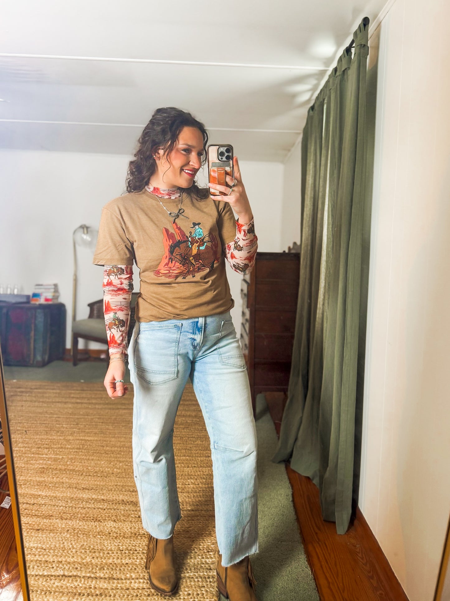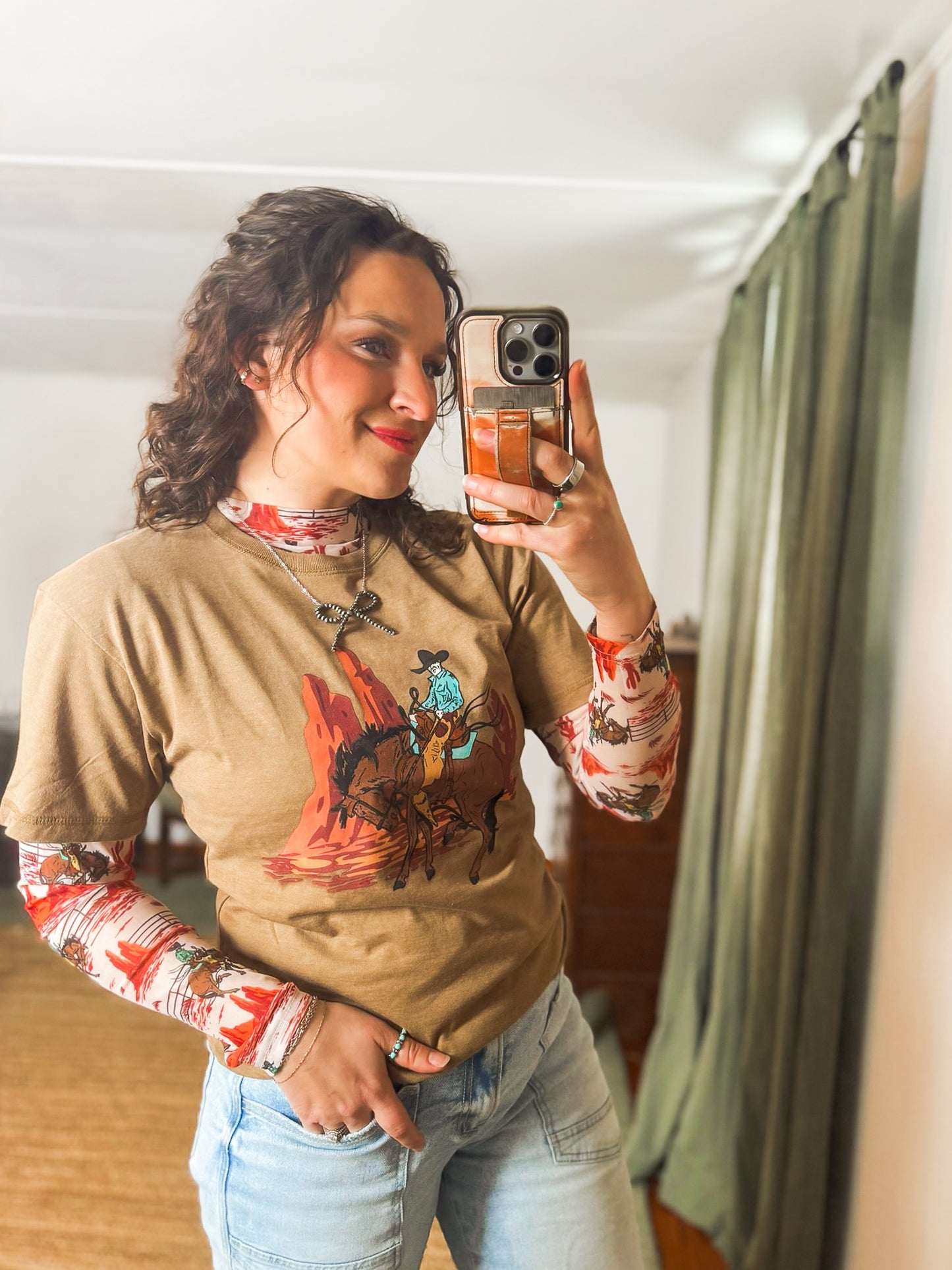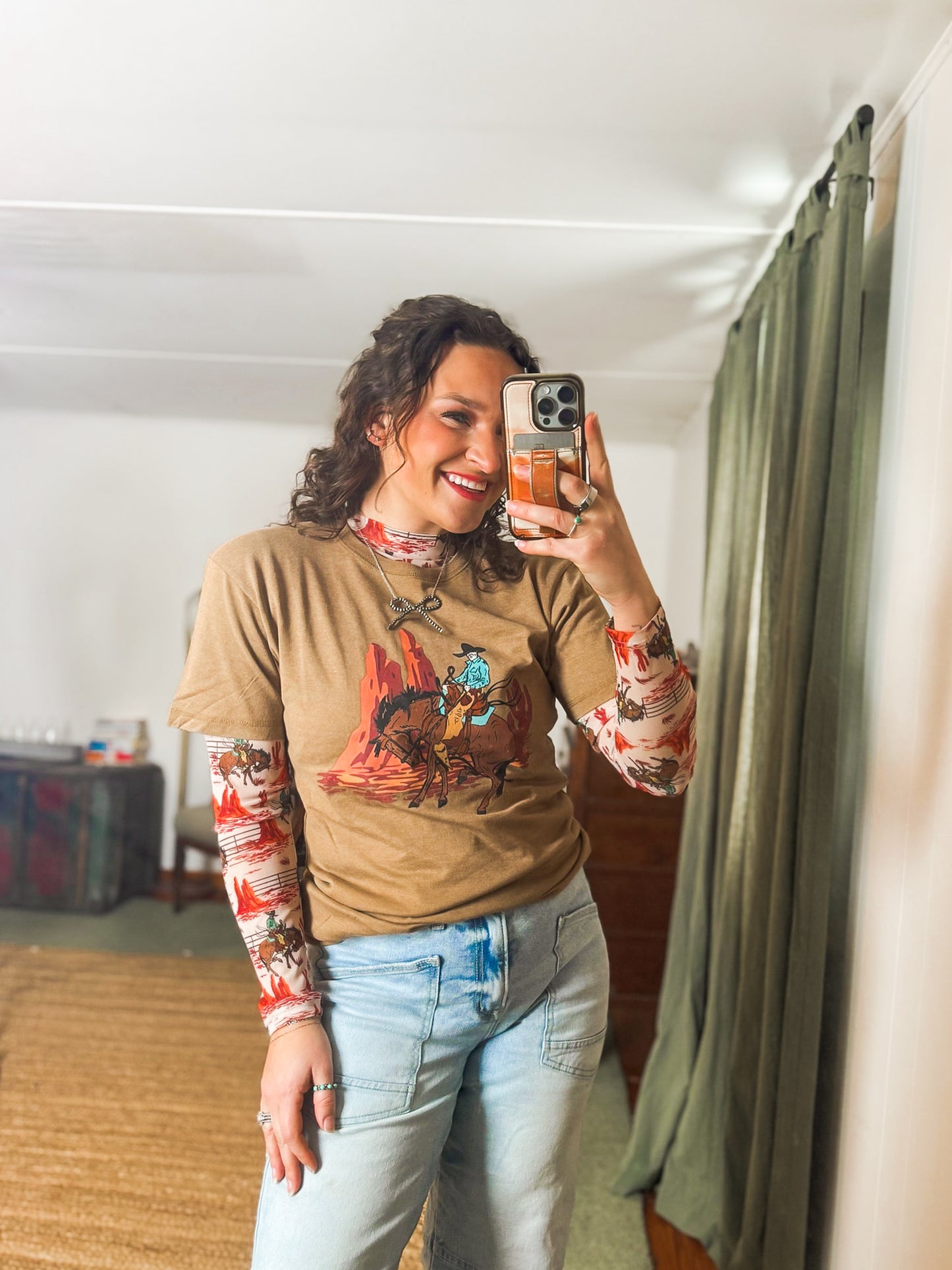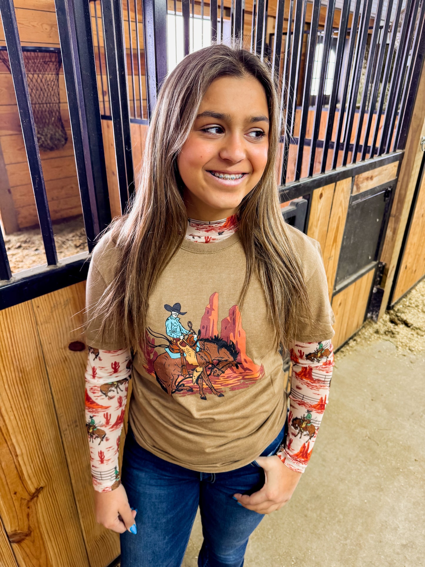 Warm golden base with vintage-style rodeo graphic