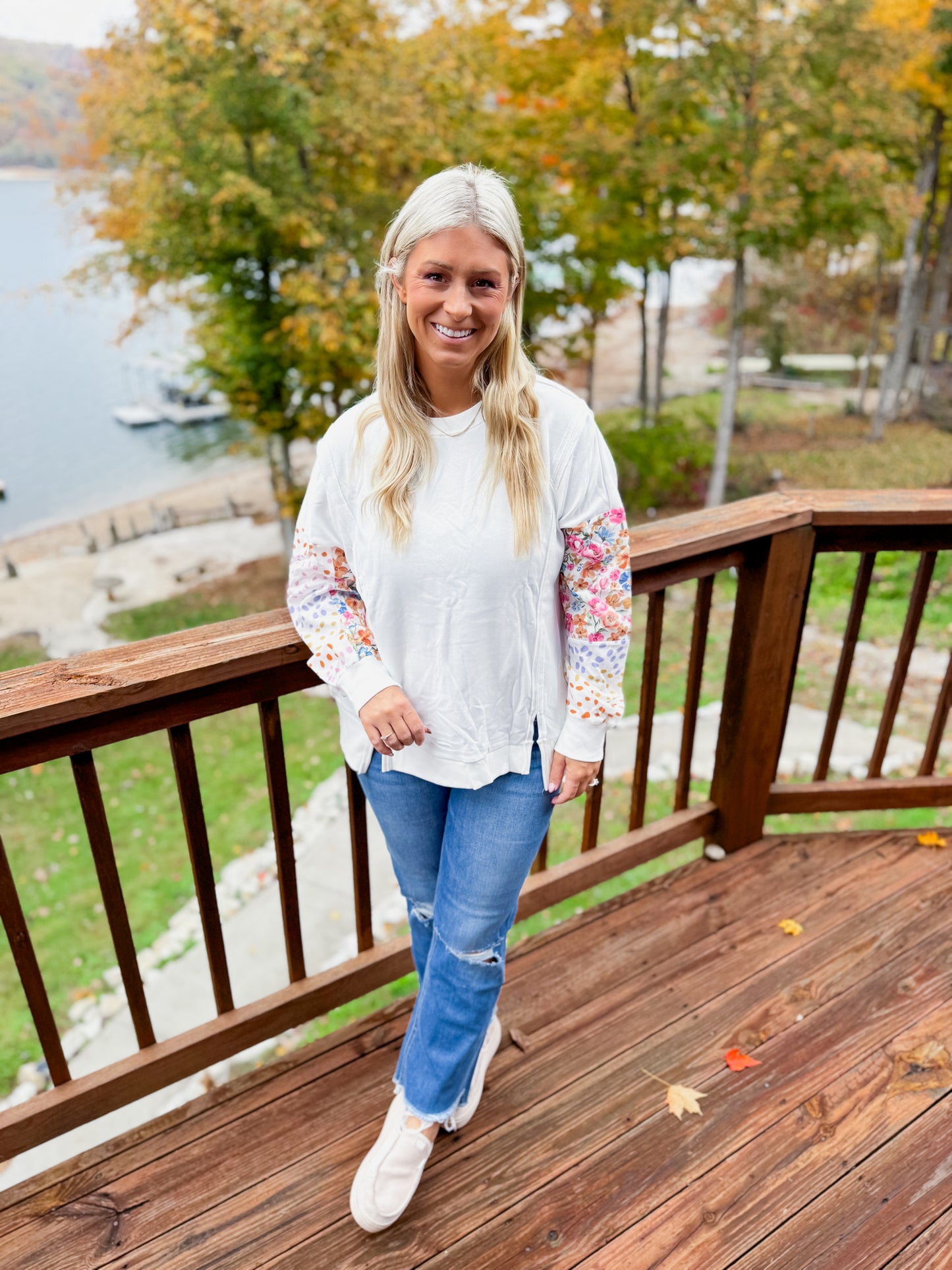 Add a playful pop to your everyday look with our Confetti Sleeve Pullover ๐ This cozy top features a soft, relaxed fit body with colorful, speckled and floral sleeves that bring a fun twist to a classic style. Perfect for pairing with your favorite jeans, itโs lightweight enough for cool mornings and comfy enough for all-day wear. Whether youโre grabbing coffee or heading out for weekend errands, this one keeps you cute and casual without trying too hard!
