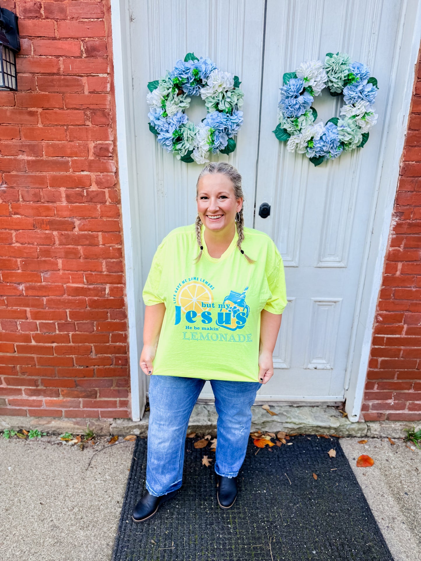 Inspired by Forrest Frank-When life gives you lemons ๐ let Jesus make the lemonade! This cheerful lime tee is full of joy, color, and faith โ perfect for brightening any day. Soft, comfy, and full of good vibes, itโs a fun reminder to trust His plan through every sour season!
