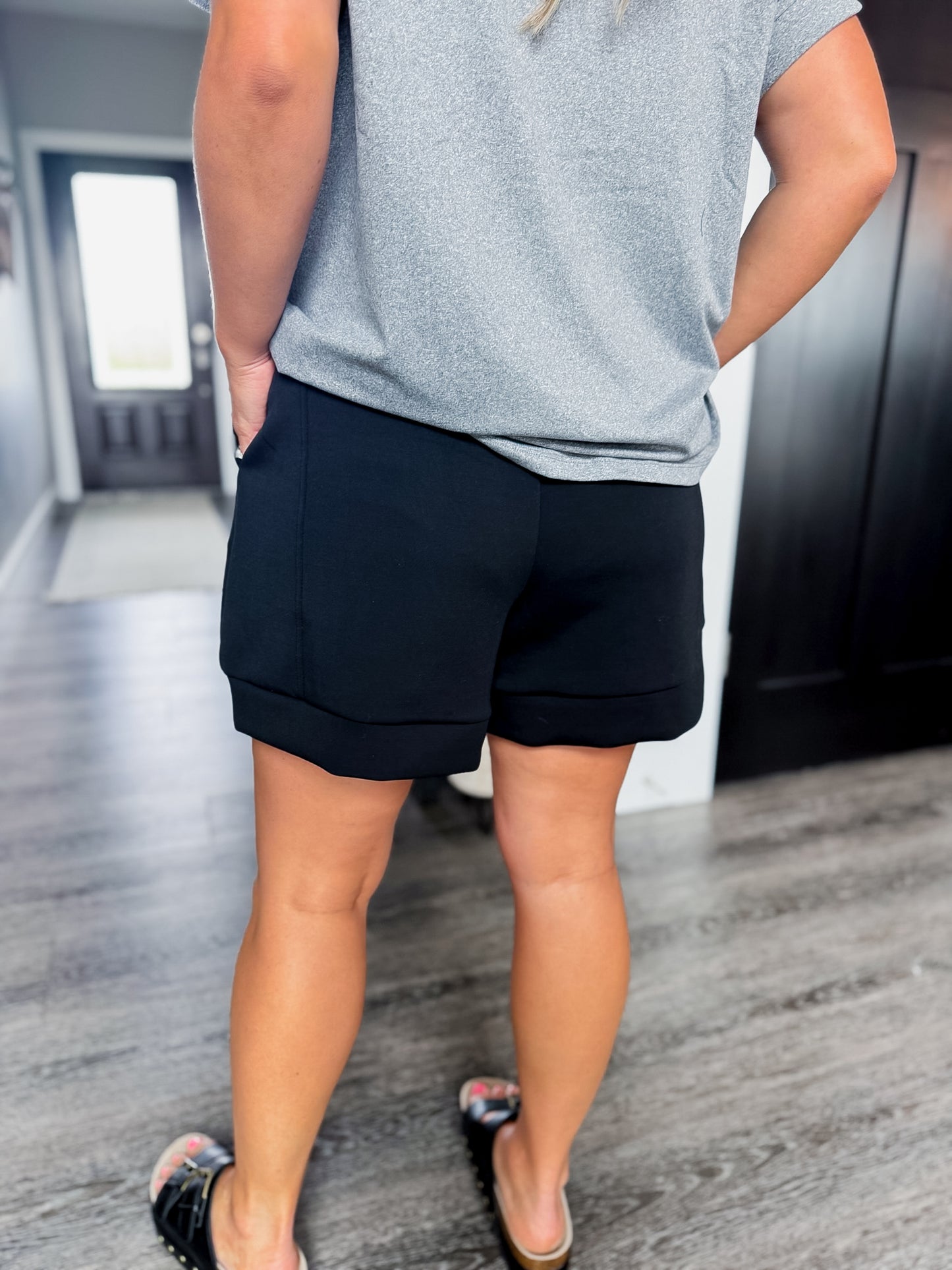 Designed with a fashionable front pleat and equipped with side pockets, these shorts add a touch of sophistication to your everyday look. Crafted from luxurious cooling scuba fabric, they provide a premium feel and ensure comfort throughout the day. Ideal for lounging or casual outings, these shorts offer a chic style that effortlessly complements your favorite summer tops.