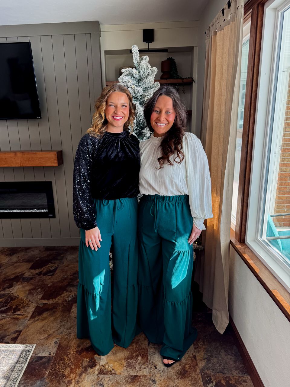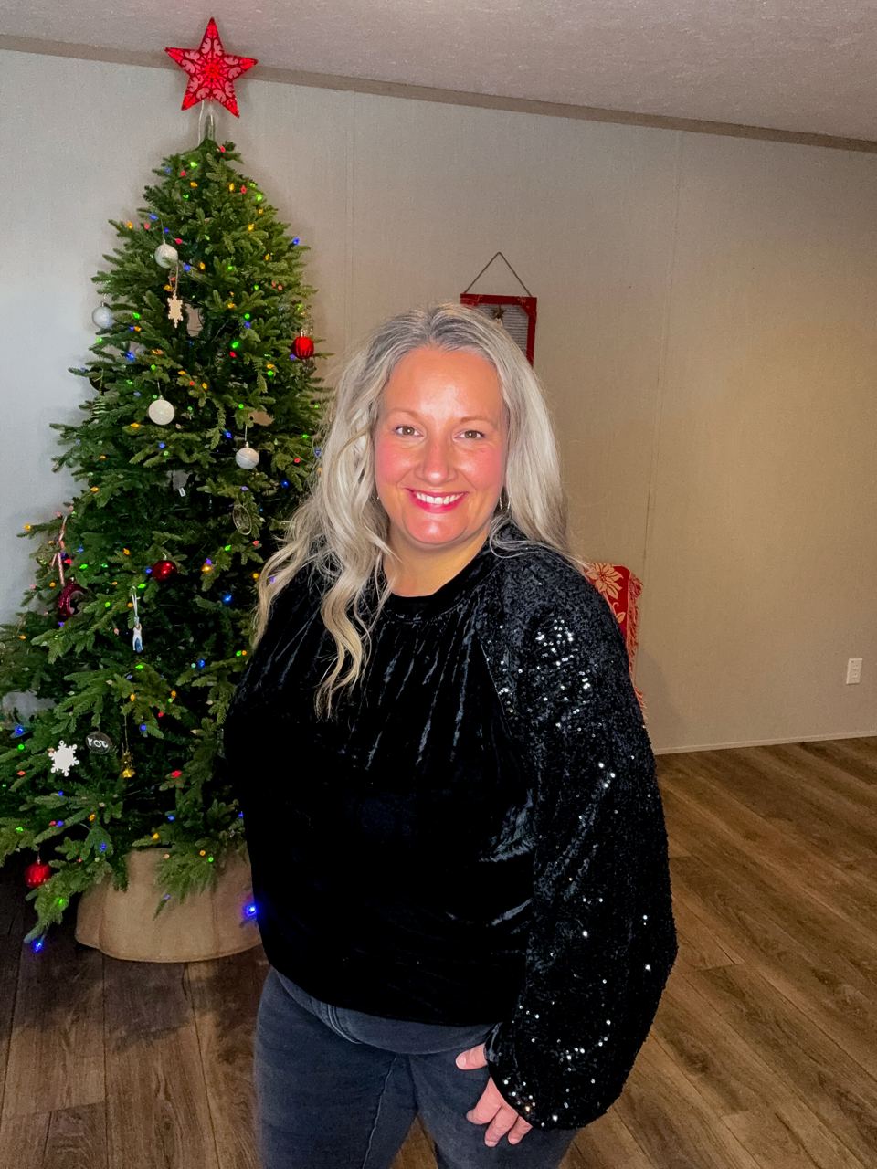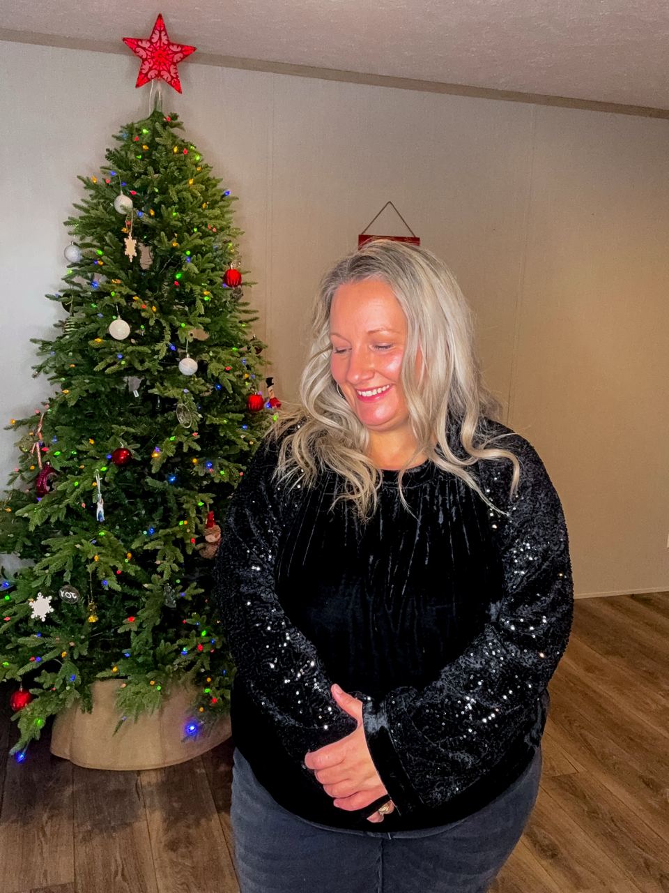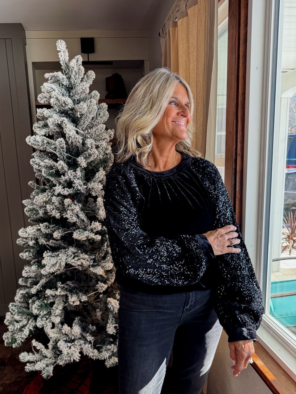 The Black Velvet Sequin Top is your go-to glam moment this season. Rich black velvet meets shimmering sequin sleeves, creating a top that feels luxe, festive, and effortlessly chic. The gathered neckline adds an elevated touch, while the soft velvet body keeps it comfortable enough for all-night wear. Pair it with satin trousers, denim, or a skirt — no matter how you style it, it brings instant wow.
